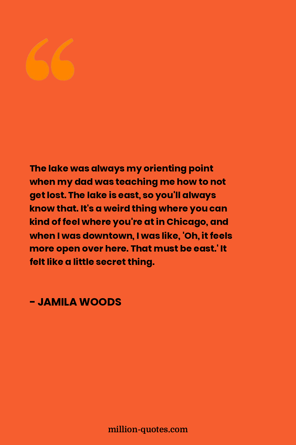 The lake was always my orienting point when my dad was teaching me how to not get lost. The lake is east, so you'll always know that. It's a weird thing where you can kind of feel where you're at in Chicago, and when I was downtown, I was like, 'Oh, it feels more open over here. That must be east.' It felt like a little secret thing.