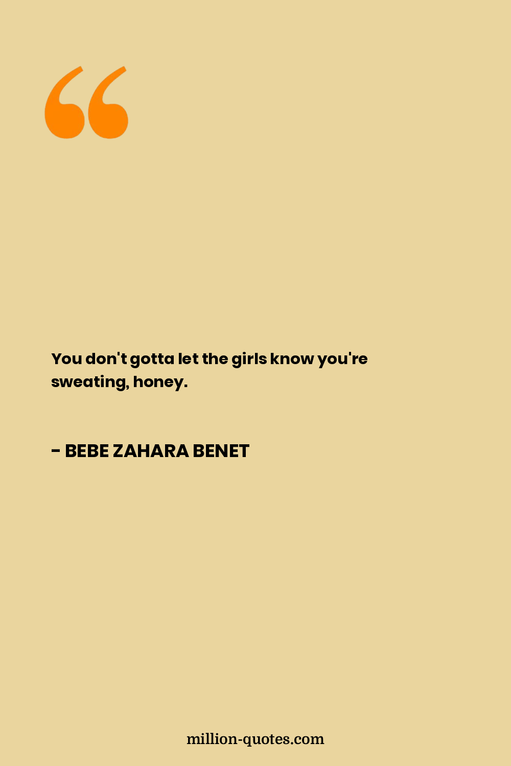 You don't gotta let the girls know you're sweating, honey.