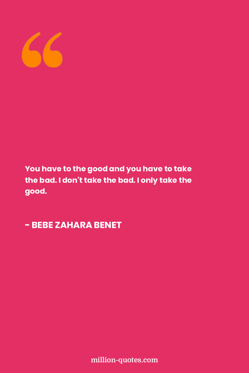 You have to the good and you have to take the bad. I don't take the bad. I only take the good.