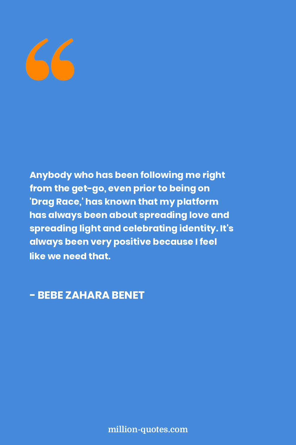 Anybody who has been following me right from the get-go, even prior to being on 'Drag Race,' has known that my platform has always been about spreading love and spreading light and celebrating identity. It's always been very positive because I feel like we need that.