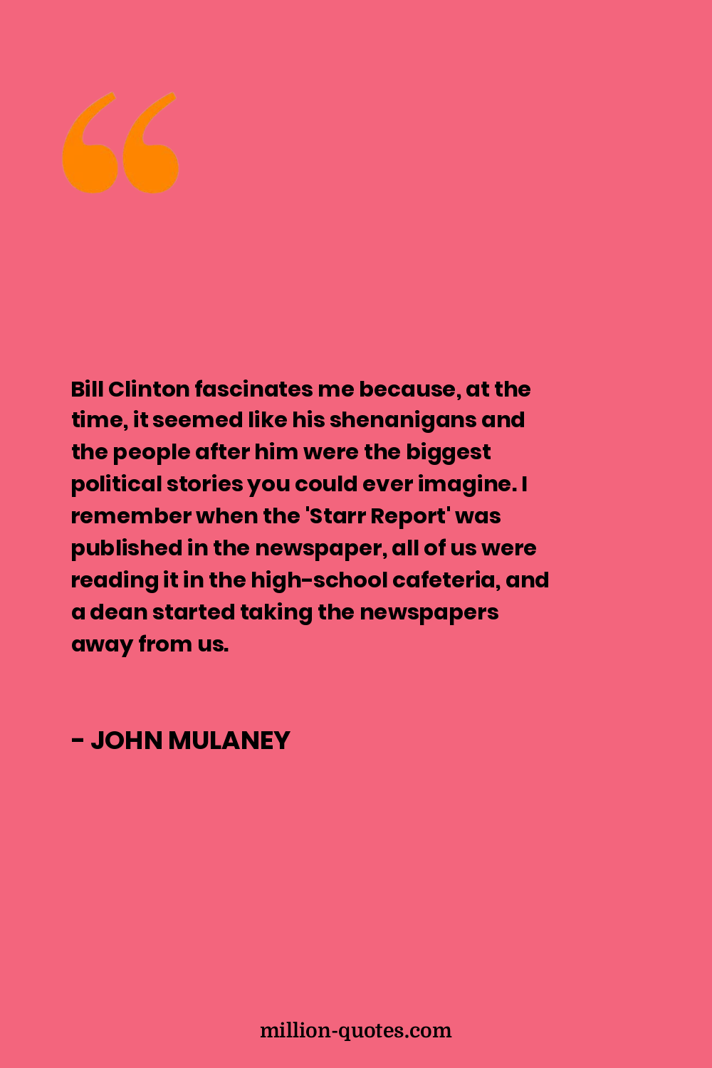Bill Clinton fascinates me because, at the time, it seemed like his shenanigans and the people after him were the biggest political stories you could ever imagine. I remember when the 'Starr Report' was published in the newspaper, all of us were reading it in the high-school cafeteria, and a dean started taking the newspapers away from us.