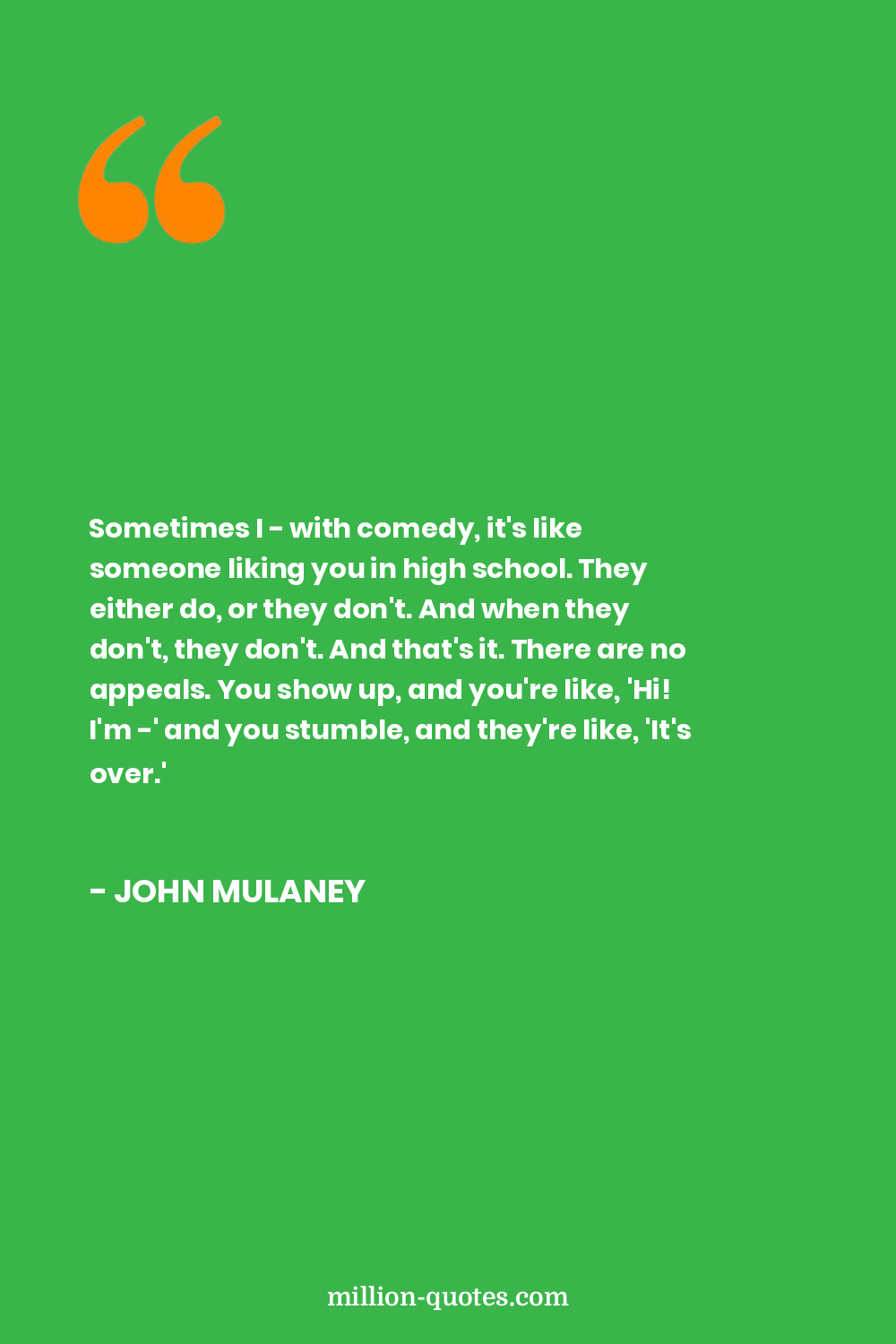 Sometimes I - with comedy, it's like someone liking you in high school. They either do, or they don't. And when they don't, they don't. And that's it. There are no appeals. You show up, and you're like, 'Hi! I'm -' and you stumble, and they're like, 'It's over.'