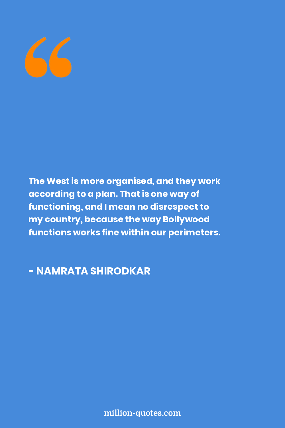 The West is more organised, and they work according to a plan. That is one way of functioning, and I mean no disrespect to my country, because the way Bollywood functions works fine within our perimeters.