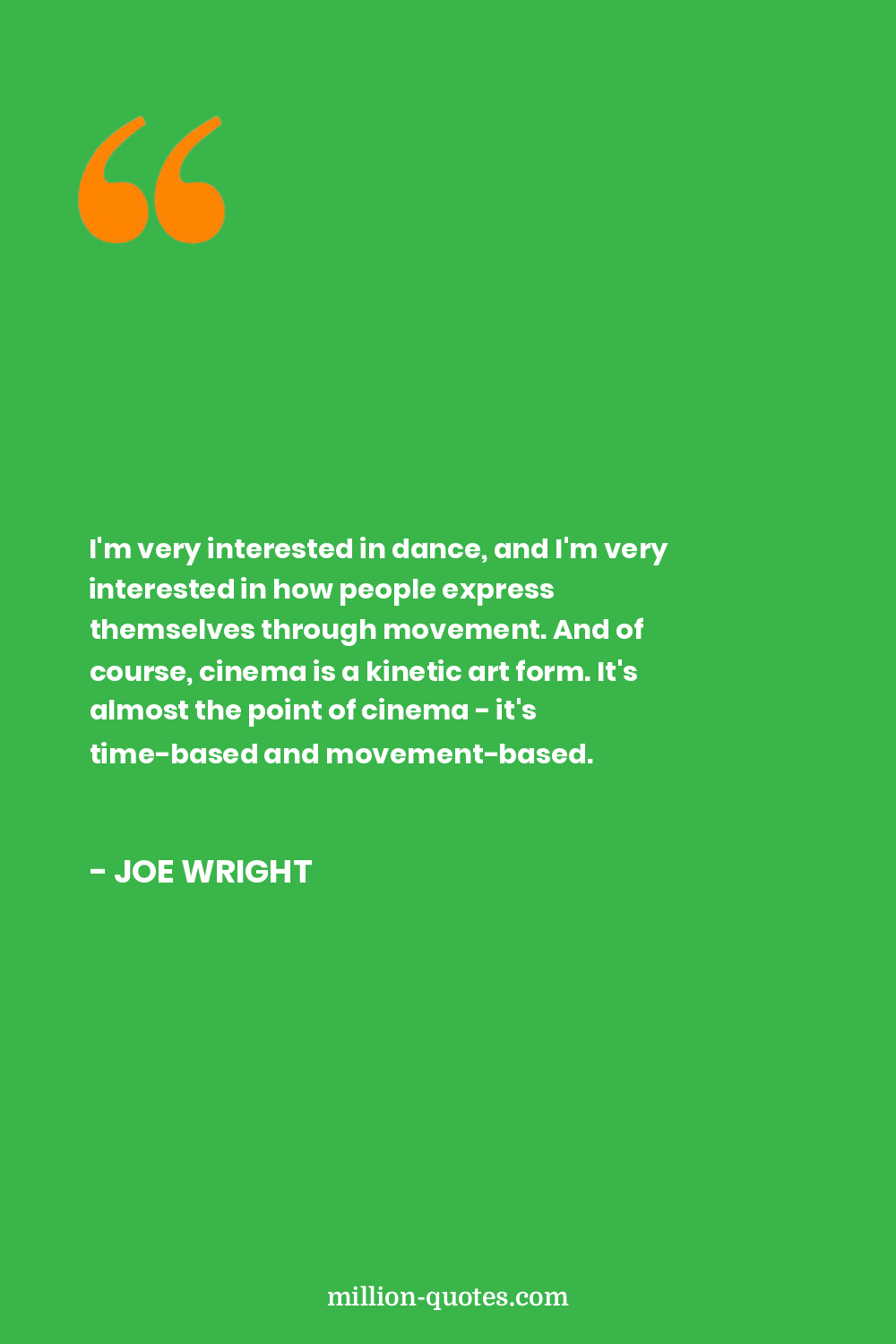 I'm very interested in dance, and I'm very interested in how people express themselves through movement. And of course, cinema is a kinetic art form. It's almost the point of cinema - it's time-based and movement-based.