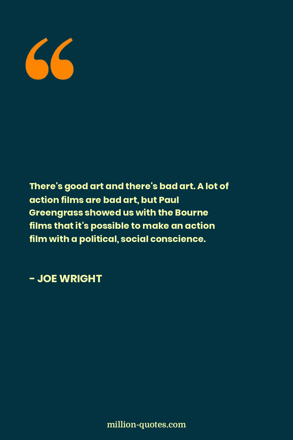 There's good art and there's bad art. A lot of action films are bad art, but Paul Greengrass showed us with the Bourne films that it's possible to make an action film with a political, social conscience.