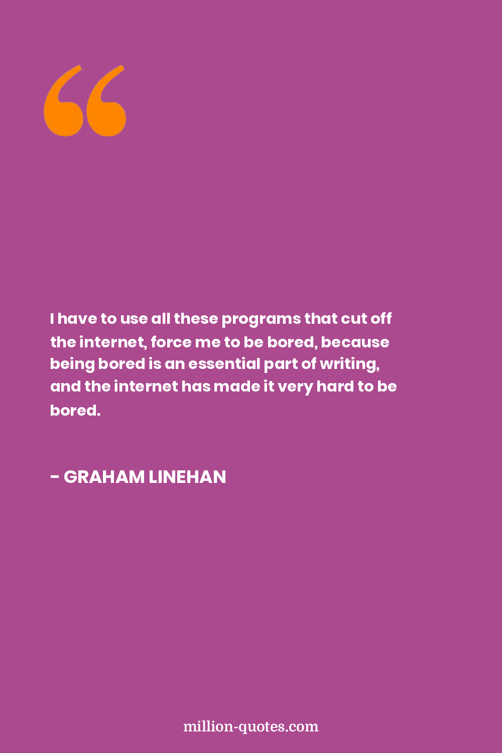 I have to use all these programs that cut off the internet, force me to be bored, because being bored is an essential part of writing, and the internet has made it very hard to be bored.