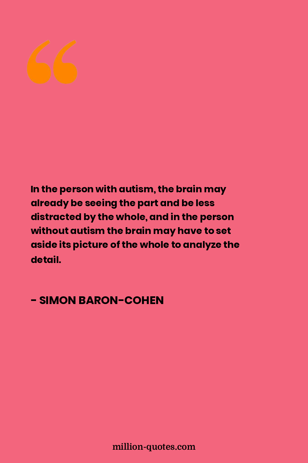 In the person with autism, the brain may already be seeing the part and be less distracted by the whole, and in the person without autism the brain may have to set aside its picture of the whole to analyze the detail.