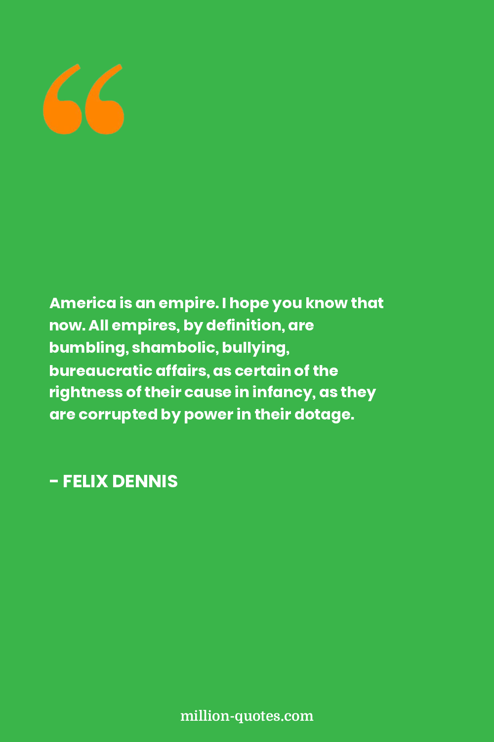 America is an empire. I hope you know that now. All empires, by definition, are bumbling, shambolic, bullying, bureaucratic affairs, as certain of the rightness of their cause in infancy, as they are corrupted by power in their dotage.