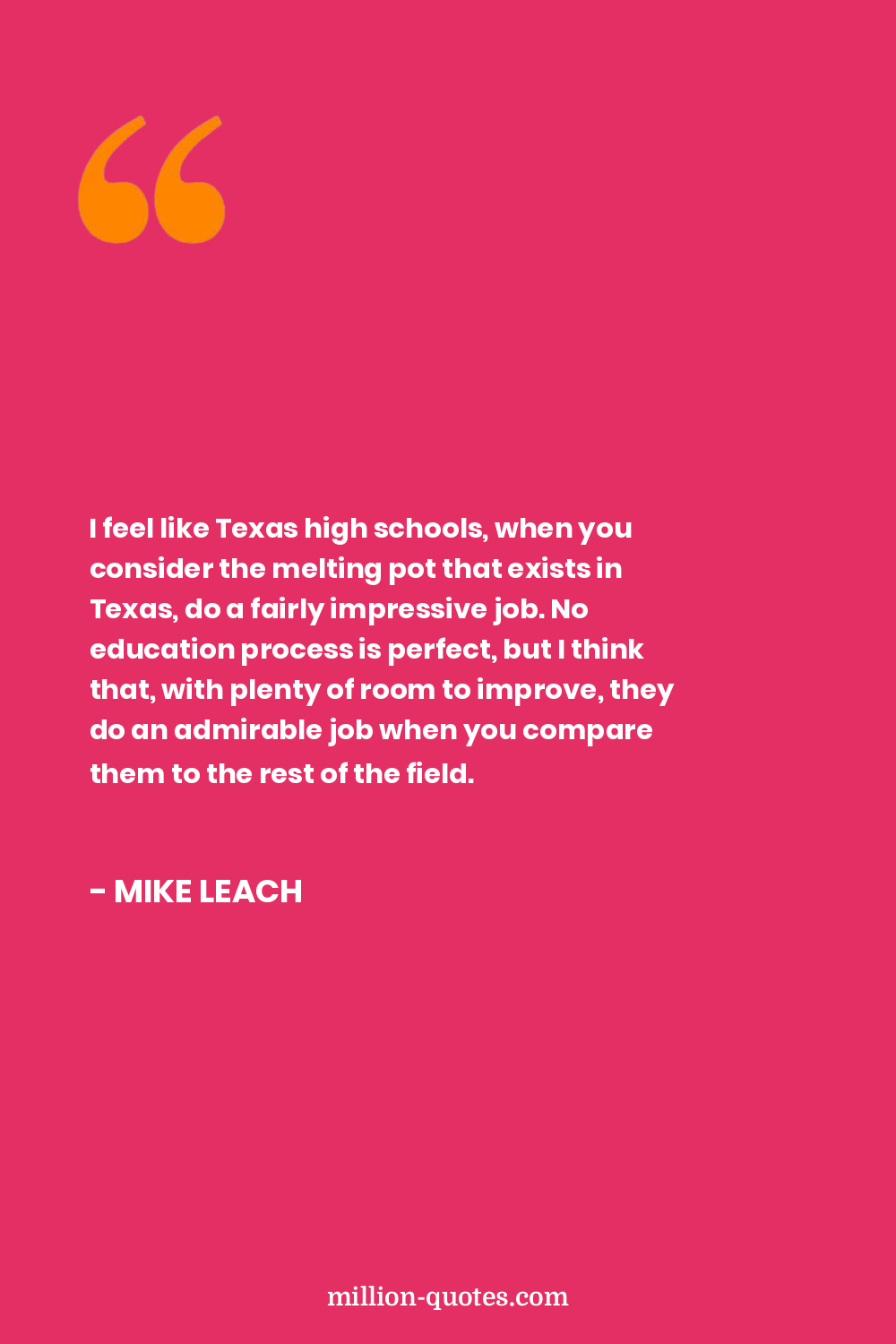 I feel like Texas high schools, when you consider the melting pot that exists in Texas, do a fairly impressive job. No education process is perfect, but I think that, with plenty of room to improve, they do an admirable job when you compare them to the rest of the field.