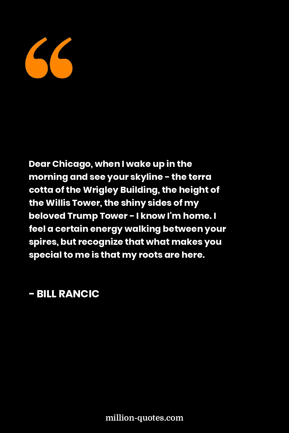Dear Chicago, when I wake up in the morning and see your skyline - the terra cotta of the Wrigley Building, the height of the Willis Tower, the shiny sides of my beloved Trump Tower - I know I'm home. I feel a certain energy walking between your spires, but recognize that what makes you special to me is that my roots are here.