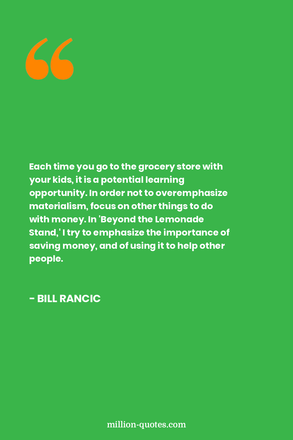 Each time you go to the grocery store with your kids, it is a potential learning opportunity. In order not to overemphasize materialism, focus on other things to do with money. In 'Beyond the Lemonade Stand,' I try to emphasize the importance of saving money, and of using it to help other people.