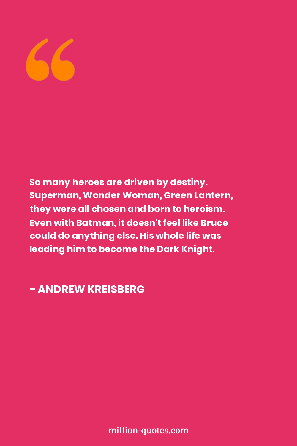 So many heroes are driven by destiny. Superman, Wonder Woman, Green Lantern, they were all chosen and born to heroism. Even with Batman, it doesn't feel like Bruce could do anything else. His whole life was leading him to become the Dark Knight.
