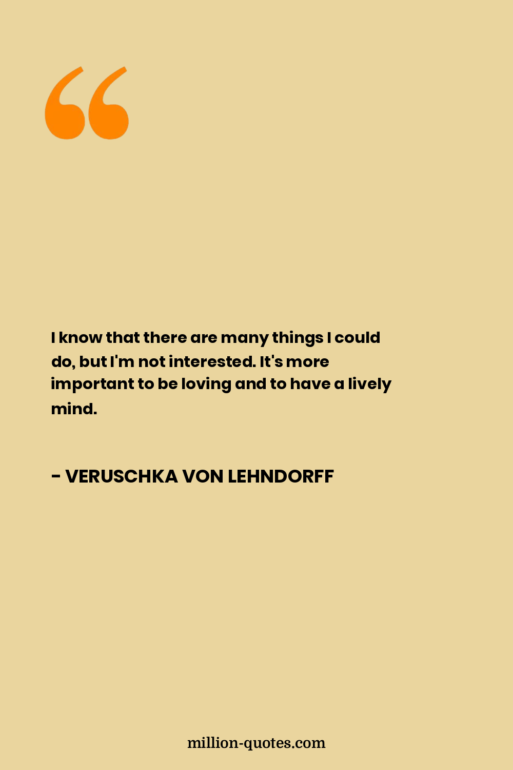 I know that there are many things I could do, but I'm not interested. It's more important to be loving and to have a lively mind.