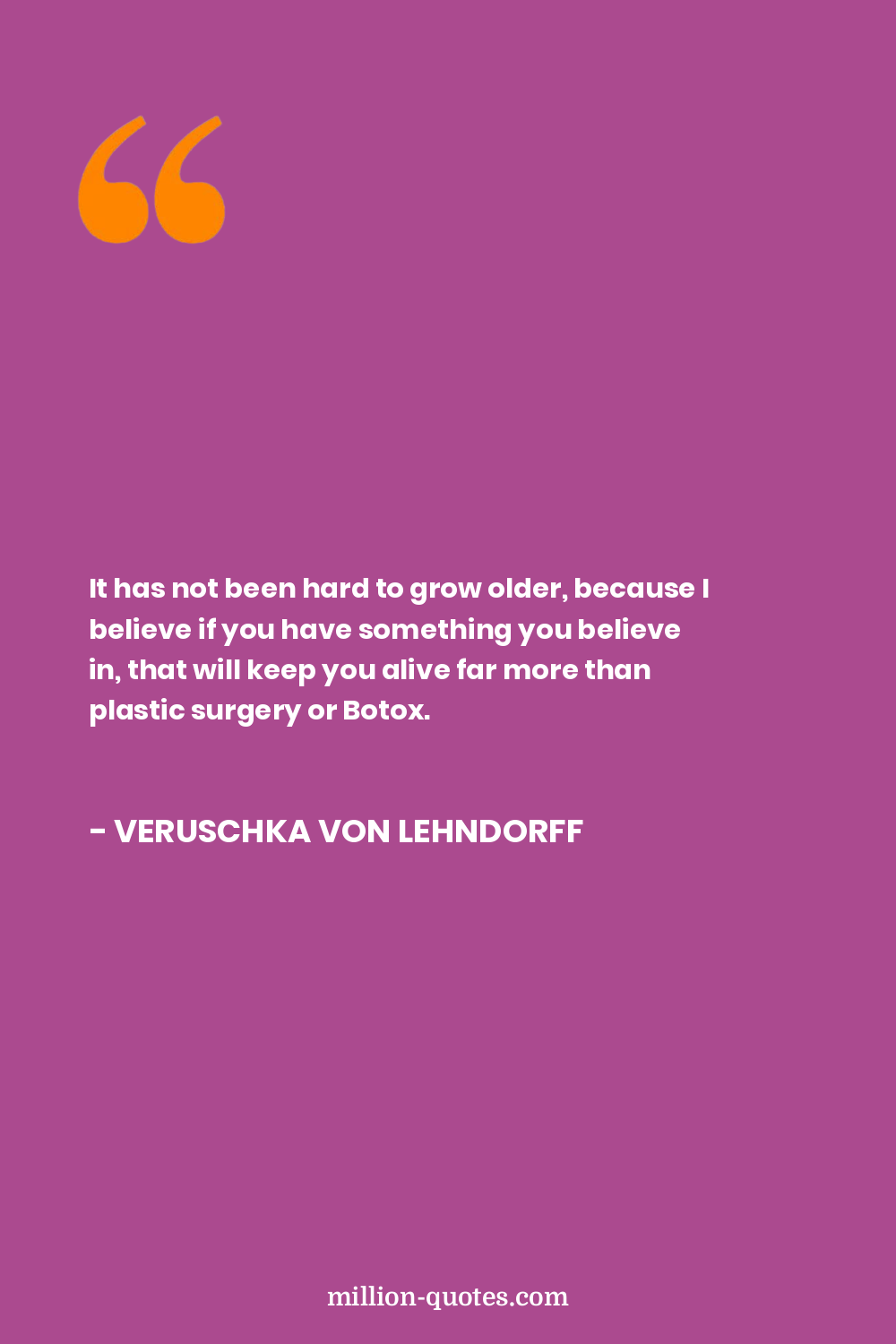 It has not been hard to grow older, because I believe if you have something you believe in, that will keep you alive far more than plastic surgery or Botox.