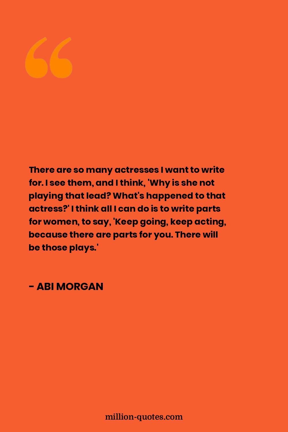 There are so many actresses I want to write for. I see them, and I think, 'Why is she not playing that lead? What's happened to that actress?' I think all I can do is to write parts for women, to say, 'Keep going, keep acting, because there are parts for you. There will be those plays.'