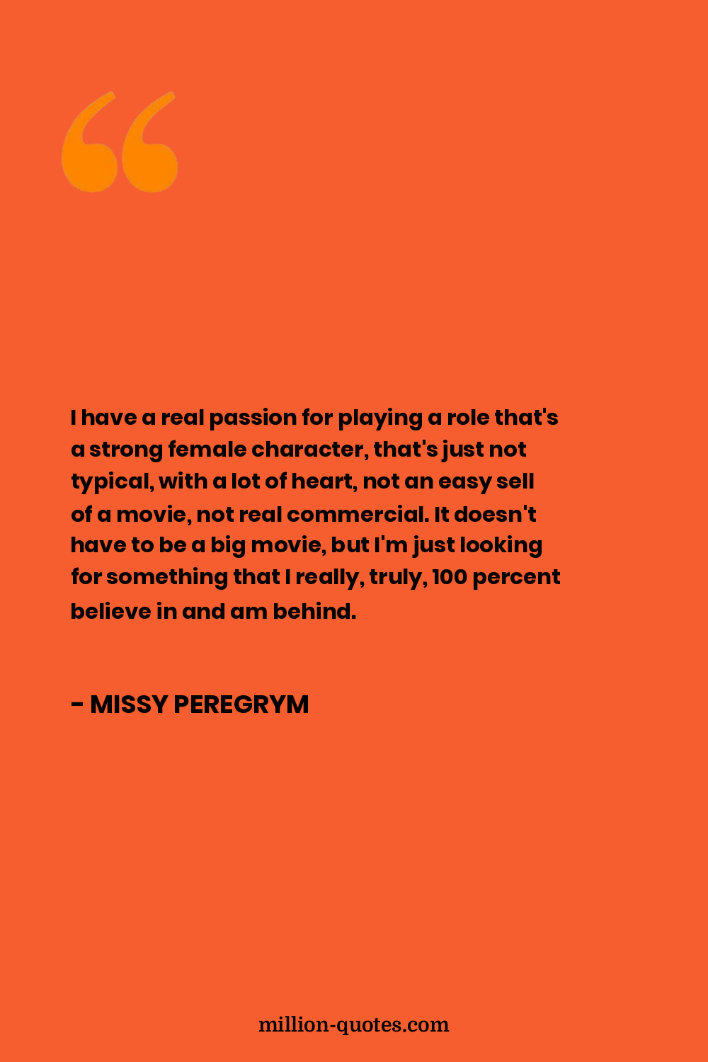 I have a real passion for playing a role that's a strong female character, that's just not typical, with a lot of heart, not an easy sell of a movie, not real commercial. It doesn't have to be a big movie, but I'm just looking for something that I really, truly, 100 percent believe in and am behind.