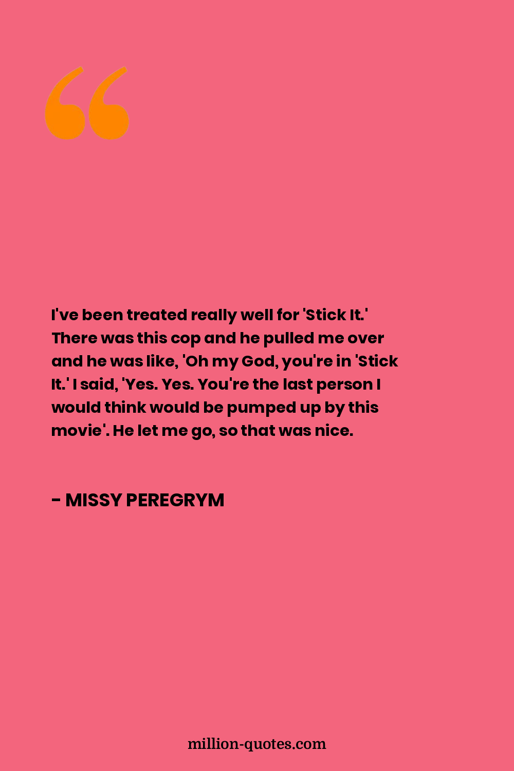 I've been treated really well for 'Stick It.' There was this cop and he pulled me over and he was like, 'Oh my God, you're in 'Stick It.' I said, 'Yes. Yes. You're the last person I would think would be pumped up by this movie'. He let me go, so that was nice.