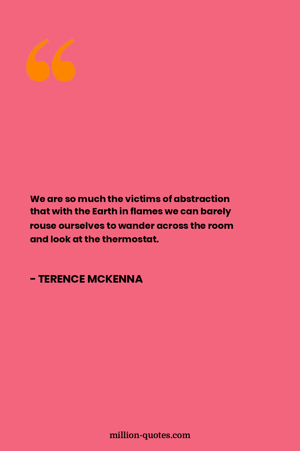 We are so much the victims of abstraction that with the Earth in flames we can barely rouse ourselves to wander across the room and look at the thermostat.