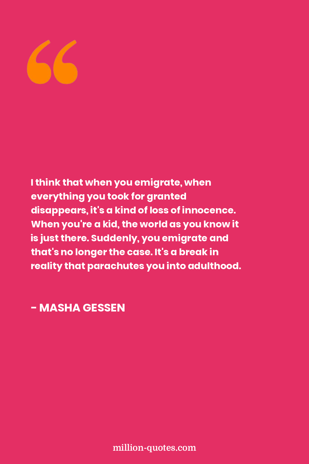 I think that when you emigrate, when everything you took for granted disappears, it's a kind of loss of innocence. When you're a kid, the world as you know it is just there. Suddenly, you emigrate and that's no longer the case. It's a break in reality that parachutes you into adulthood.