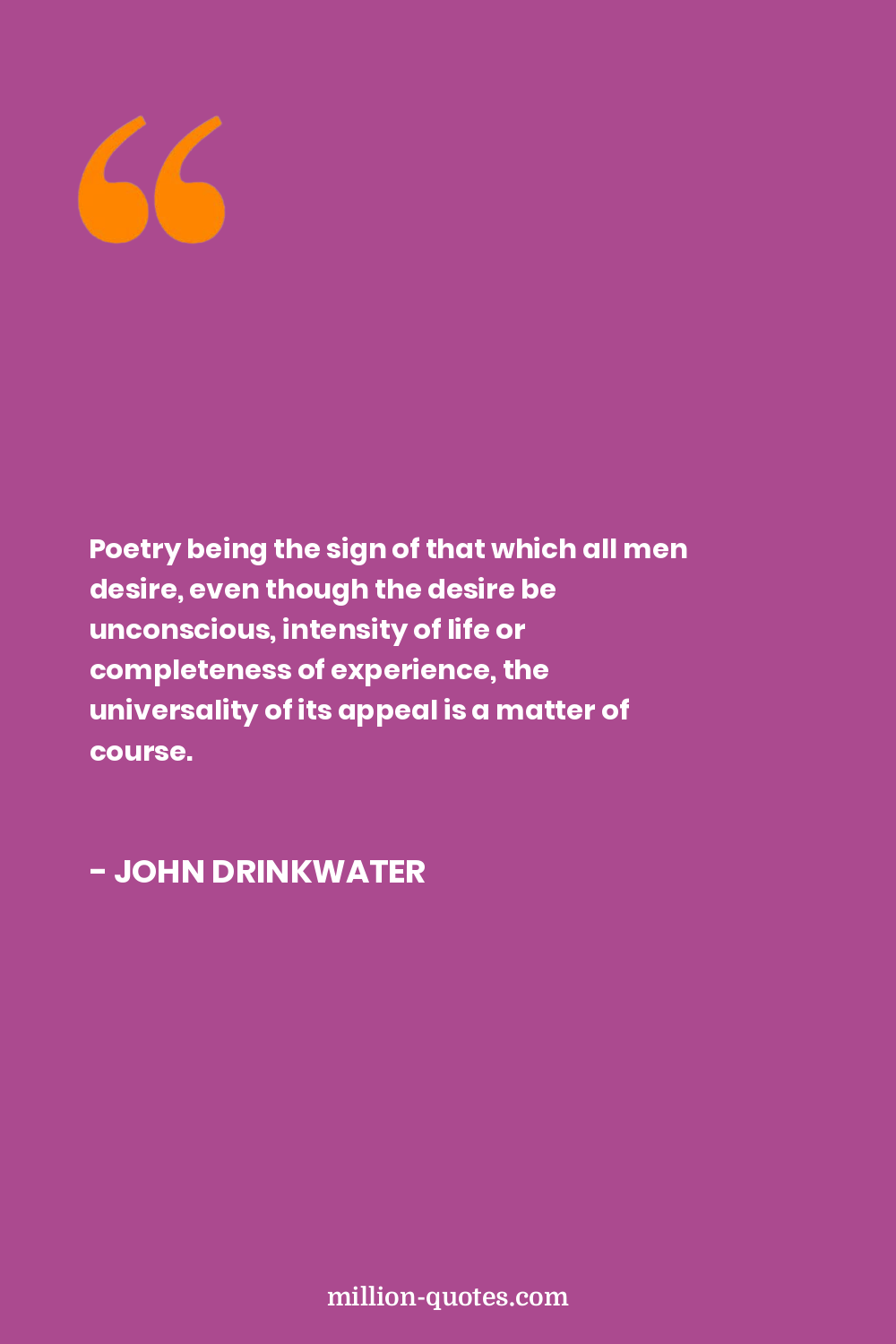 Poetry being the sign of that which all men desire, even though the desire be unconscious, intensity of life or completeness of experience, the universality of its appeal is a matter of course.