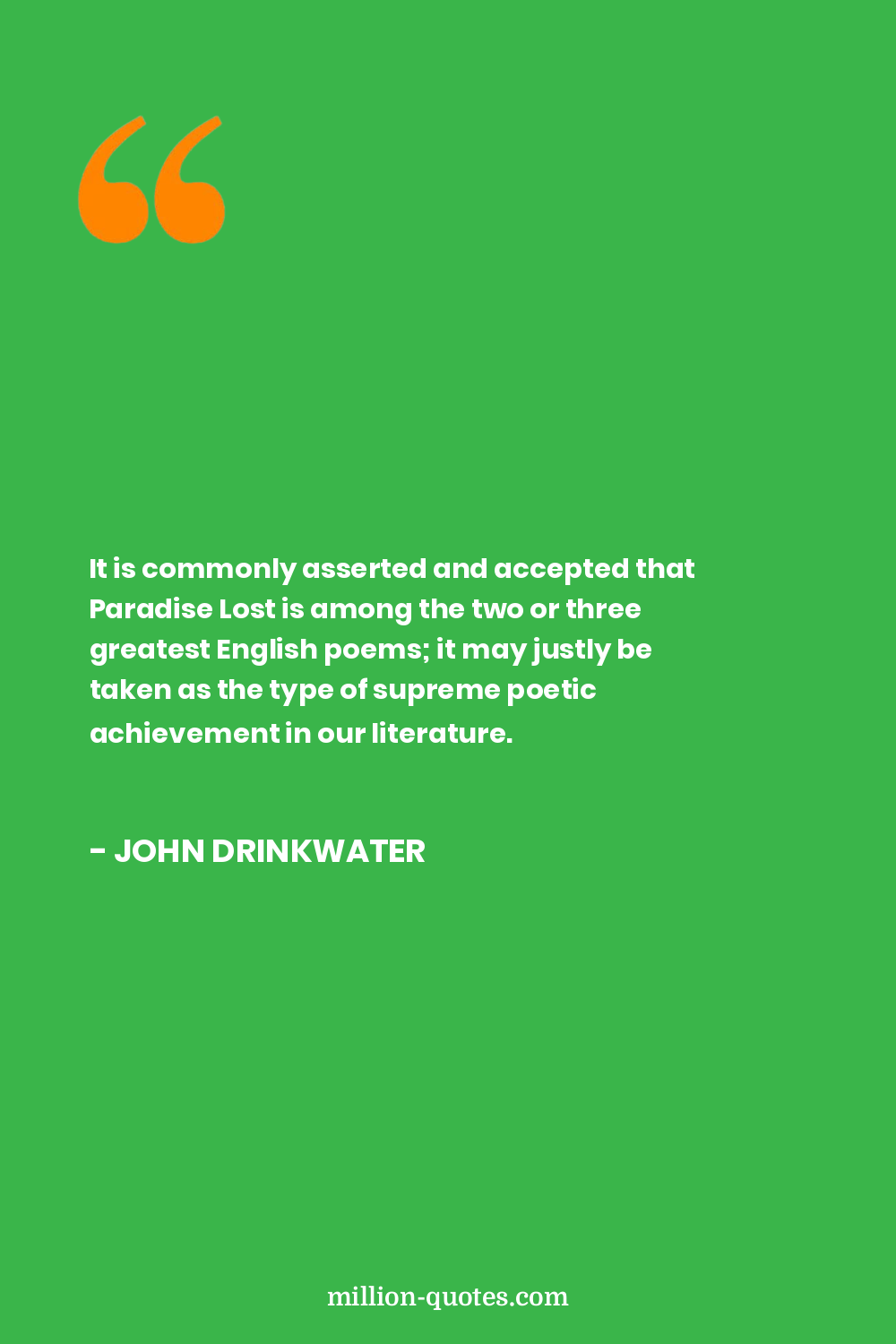 It is commonly asserted and accepted that Paradise Lost is among the two or three greatest English poems; it may justly be taken as the type of supreme poetic achievement in our literature.