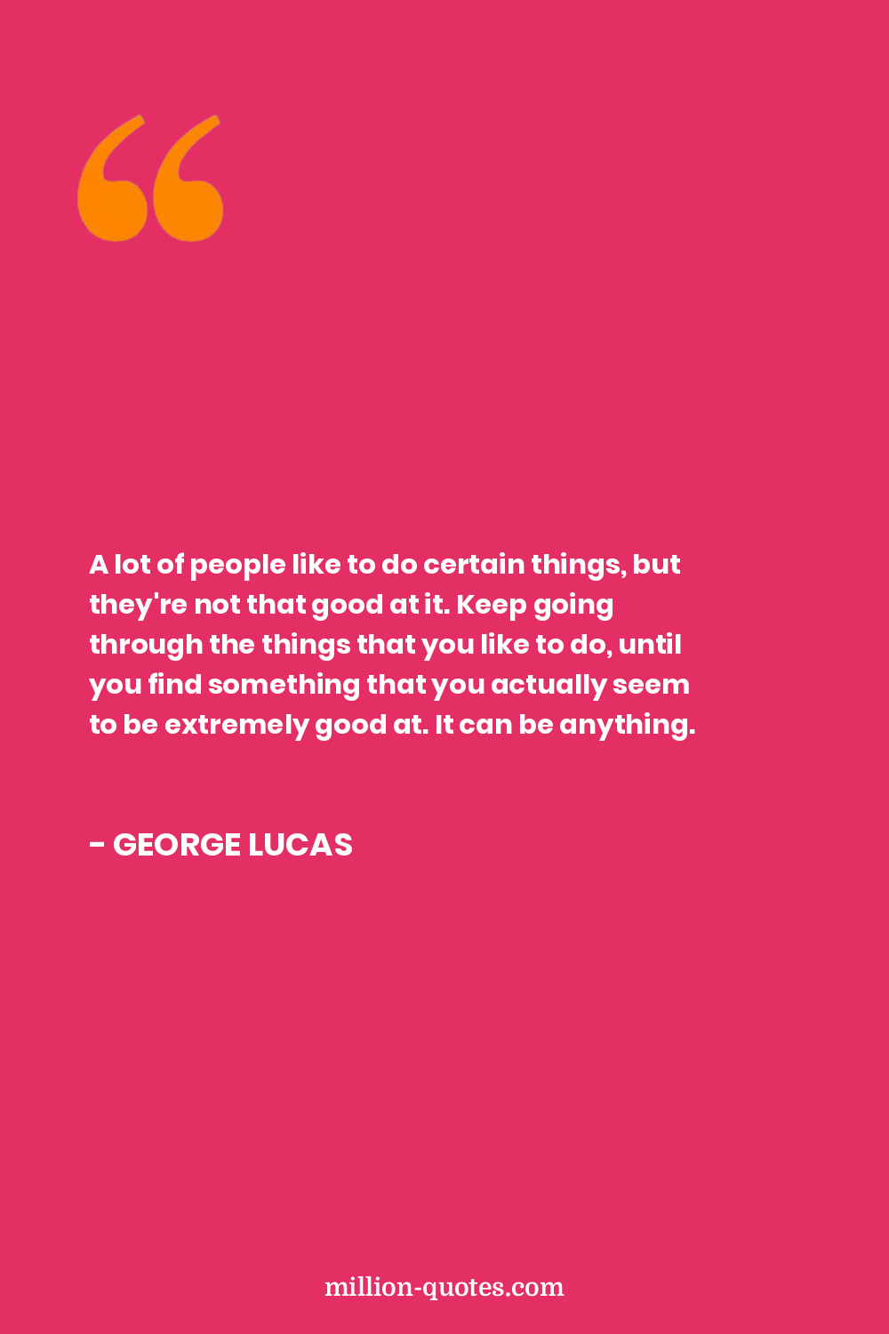 A lot of people like to do certain things, but they're not that good at it. Keep going through the things that you like to do, until you find something that you actually seem to be extremely good at. It can be anything.