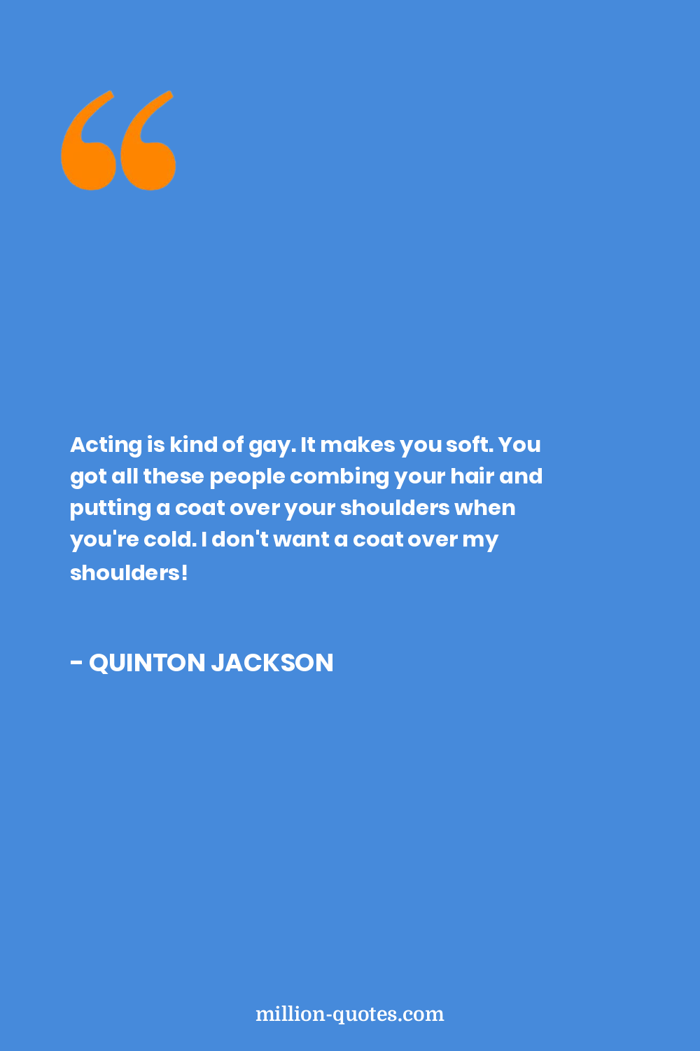 Acting is kind of gay. It makes you soft. You got all these people combing your hair and putting a coat over your shoulders when you're cold. I don't want a coat over my shoulders!