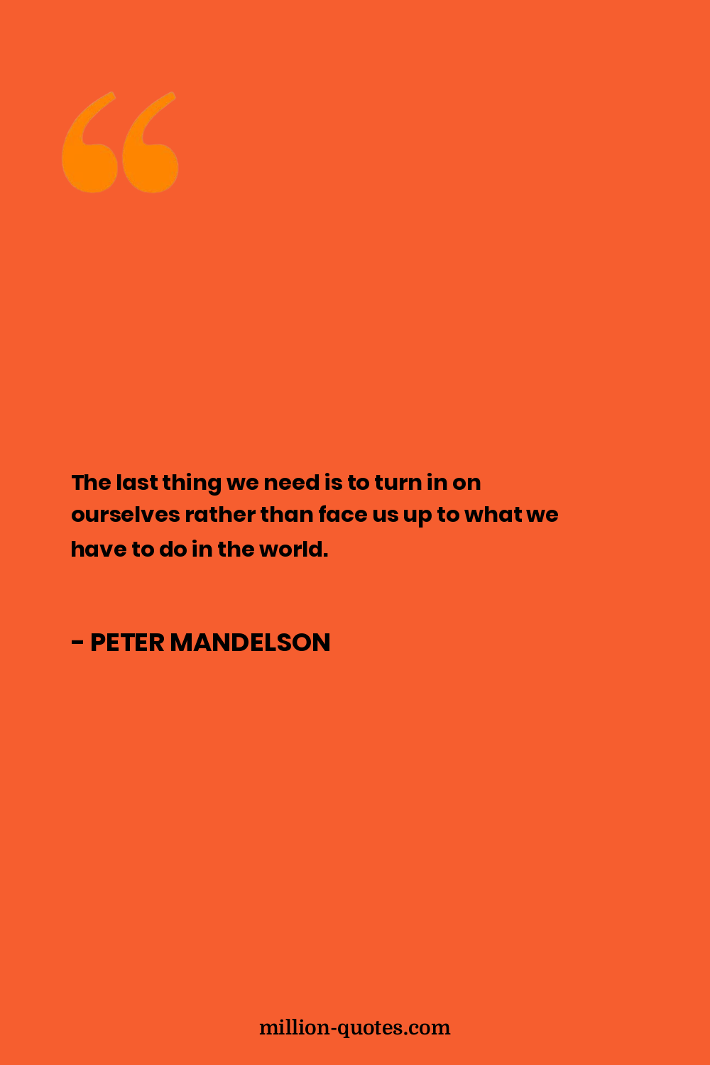 The last thing we need is to turn in on ourselves rather than face us up to what we have to do in the world.