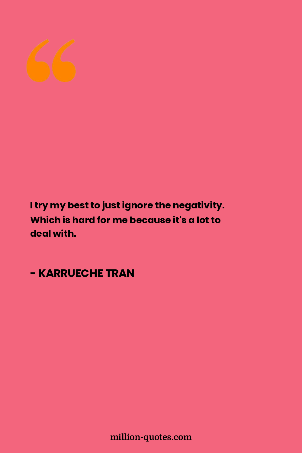 I try my best to just ignore the negativity. Which is hard for me because it's a lot to deal with.