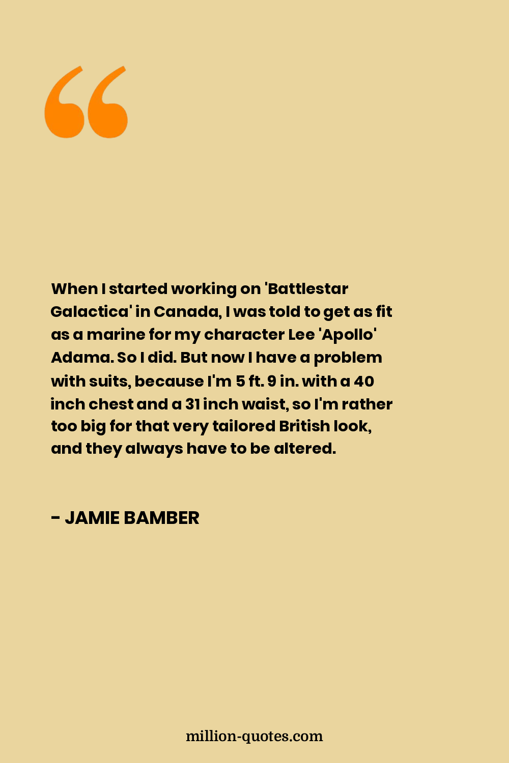 When I started working on 'Battlestar Galactica' in Canada, I was told to get as fit as a marine for my character Lee 'Apollo' Adama. So I did. But now I have a problem with suits, because I'm 5 ft. 9 in. with a 40 inch chest and a 31 inch waist, so I'm rather too big for that very tailored British look, and they always have to be altered.
