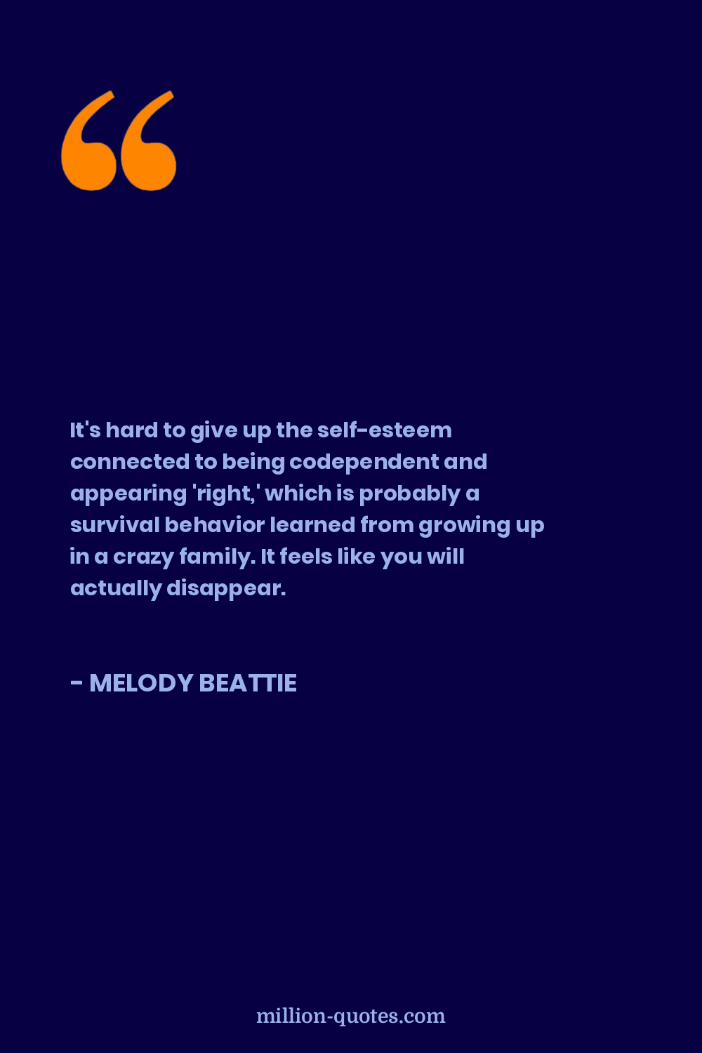 It's hard to give up the self-esteem connected to being codependent and appearing 'right,' which is probably a survival behavior learned from growing up in a crazy family. It feels like you will actually disappear.