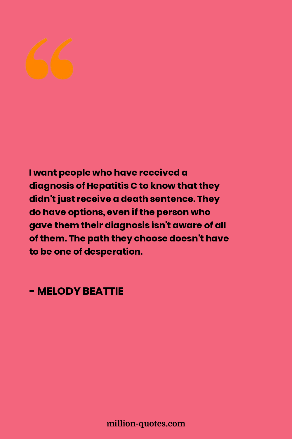 I want people who have received a diagnosis of Hepatitis C to know that they didn't just receive a death sentence. They do have options, even if the person who gave them their diagnosis isn't aware of all of them. The path they choose doesn't have to be one of desperation.