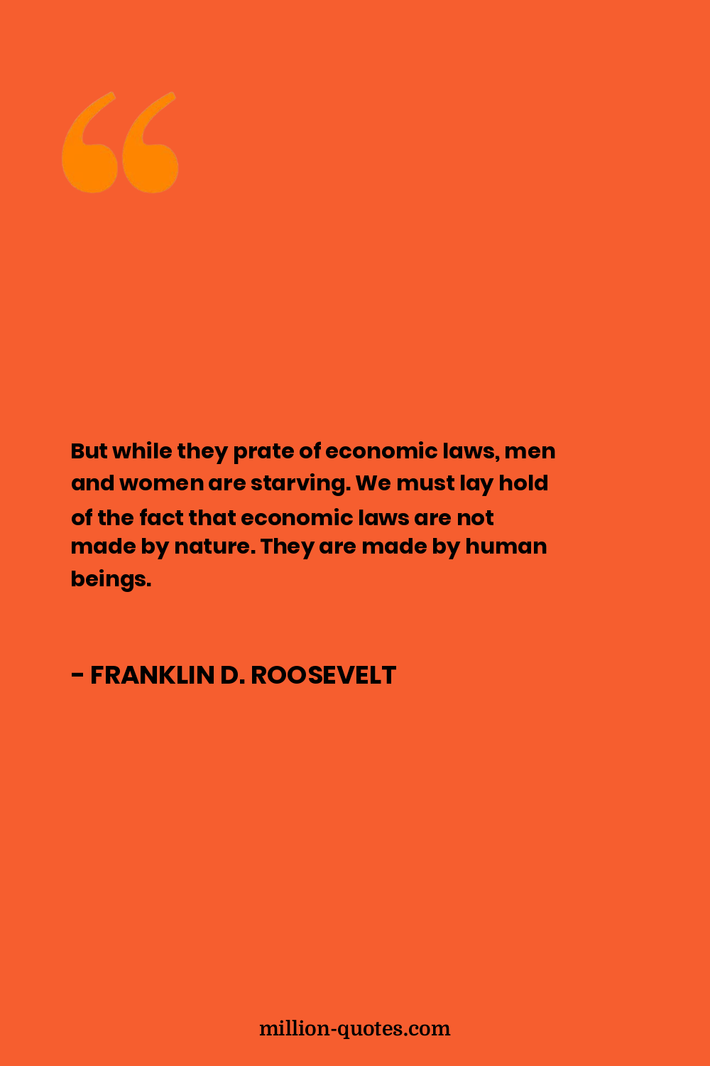 But while they prate of economic laws, men and women are starving. We must lay hold of the fact that economic laws are not made by nature. They are made by human beings.