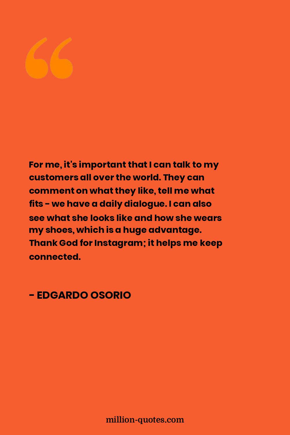 For me, it's important that I can talk to my customers all over the world. They can comment on what they like, tell me what fits - we have a daily dialogue. I can also see what she looks like and how she wears my shoes, which is a huge advantage. Thank God for Instagram; it helps me keep connected.