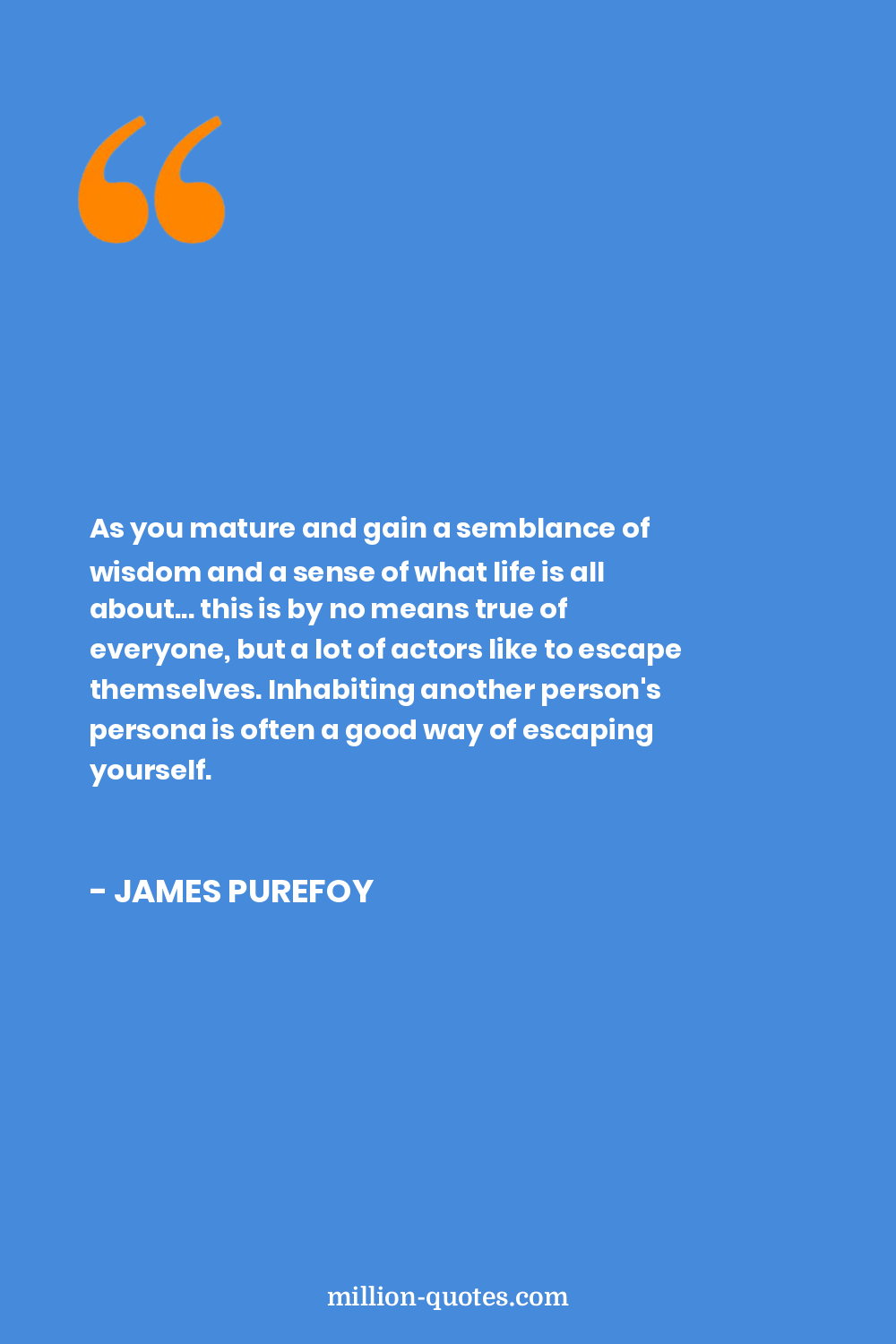 As you mature and gain a semblance of wisdom and a sense of what life is all about... this is by no means true of everyone, but a lot of actors like to escape themselves. Inhabiting another person's persona is often a good way of escaping yourself.