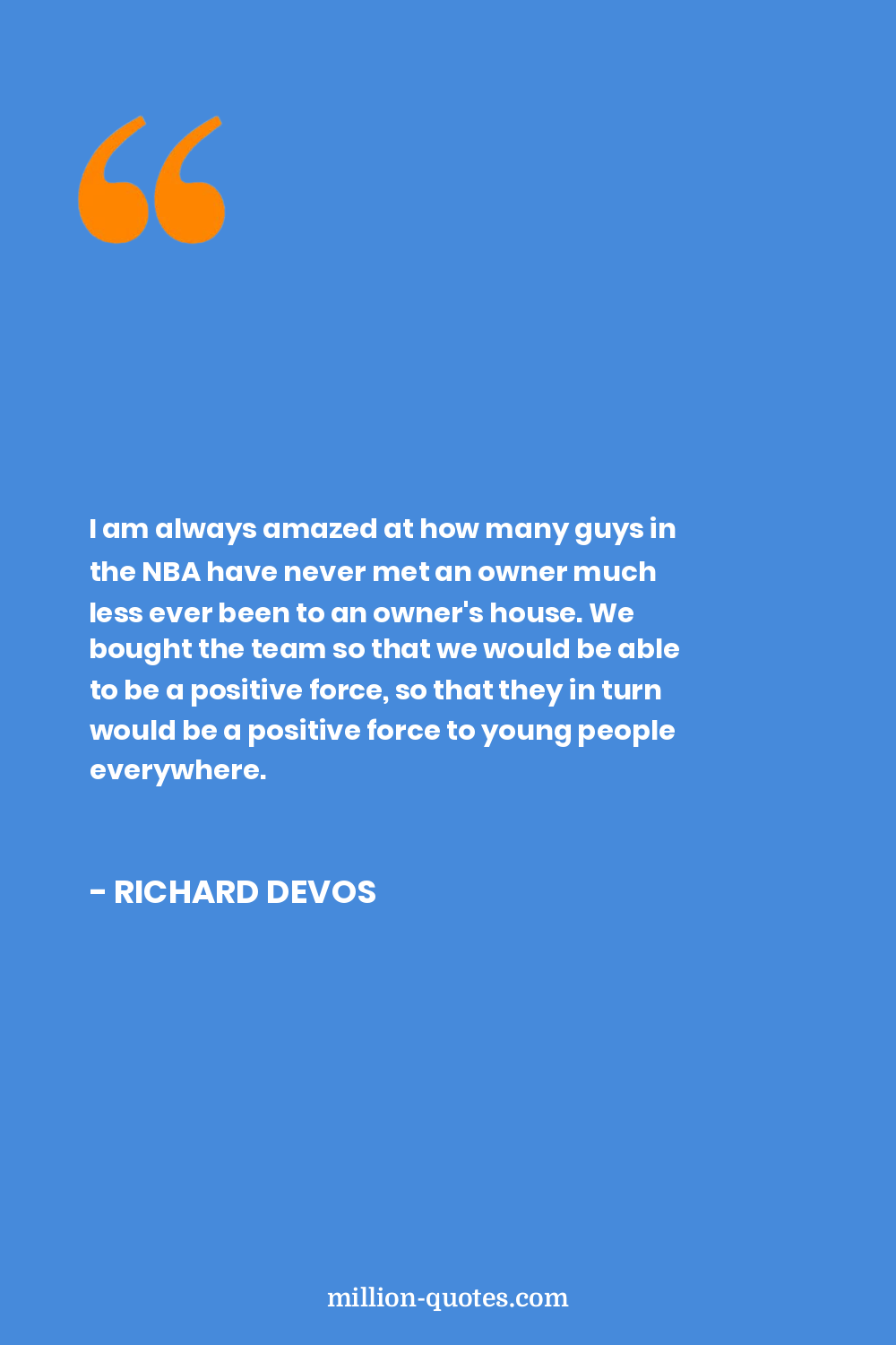 I am always amazed at how many guys in the NBA have never met an owner much less ever been to an owner's house. We bought the team so that we would be able to be a positive force, so that they in turn would be a positive force to young people everywhere.