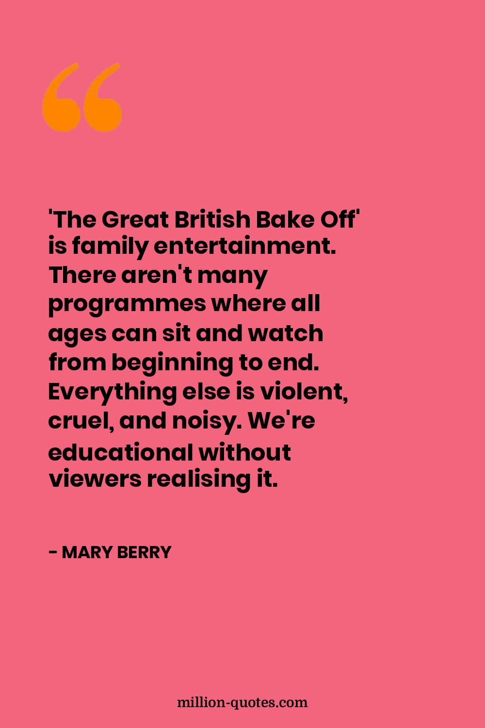 'The Great British Bake Off' is family entertainment. There aren't many programmes where all ages can sit and watch from beginning to end. Everything else is violent, cruel, and noisy. We're educational without viewers realising it.