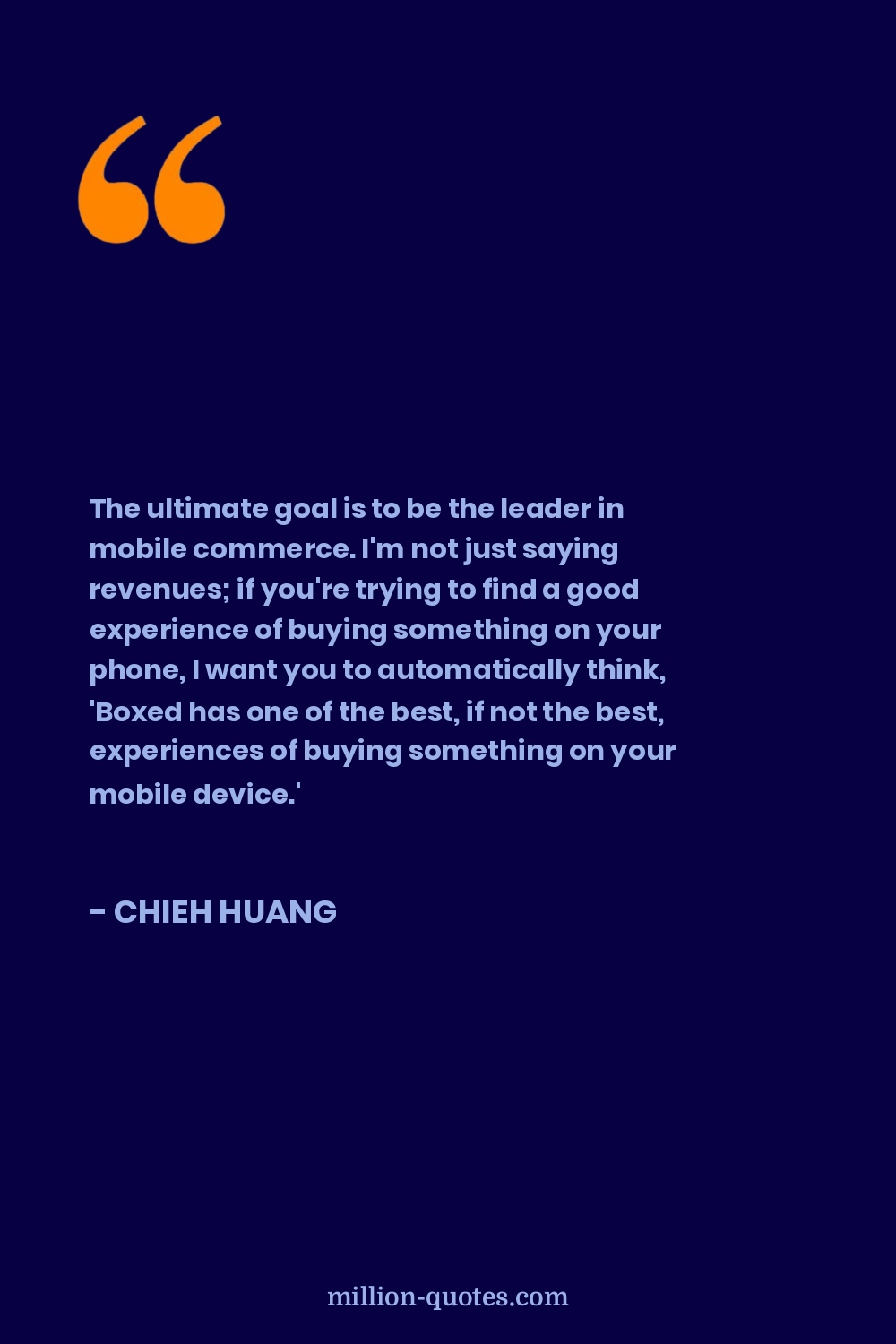 The ultimate goal is to be the leader in mobile commerce. I'm not just saying revenues; if you're trying to find a good experience of buying something on your phone, I want you to automatically think, 'Boxed has one of the best, if not the best, experiences of buying something on your mobile device.'