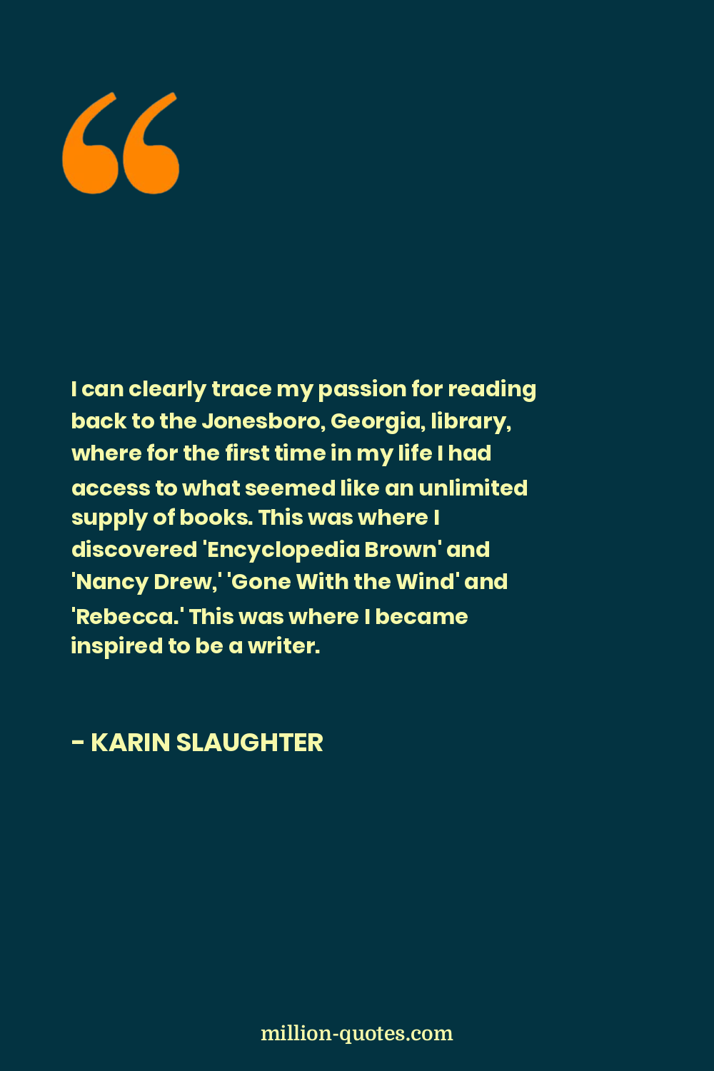 I can clearly trace my passion for reading back to the Jonesboro, Georgia, library, where for the first time in my life I had access to what seemed like an unlimited supply of books. This was where I discovered 'Encyclopedia Brown' and 'Nancy Drew,' 'Gone With the Wind' and 'Rebecca.' This was where I became inspired to be a writer.