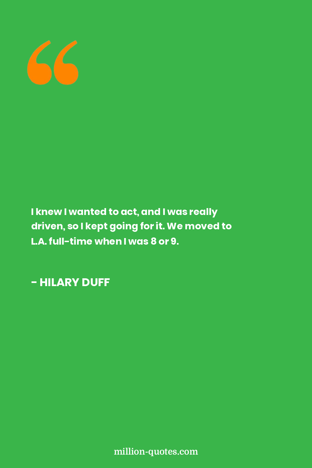 I knew I wanted to act, and I was really driven, so I kept going for it. We moved to L.A. full-time when I was 8 or 9.