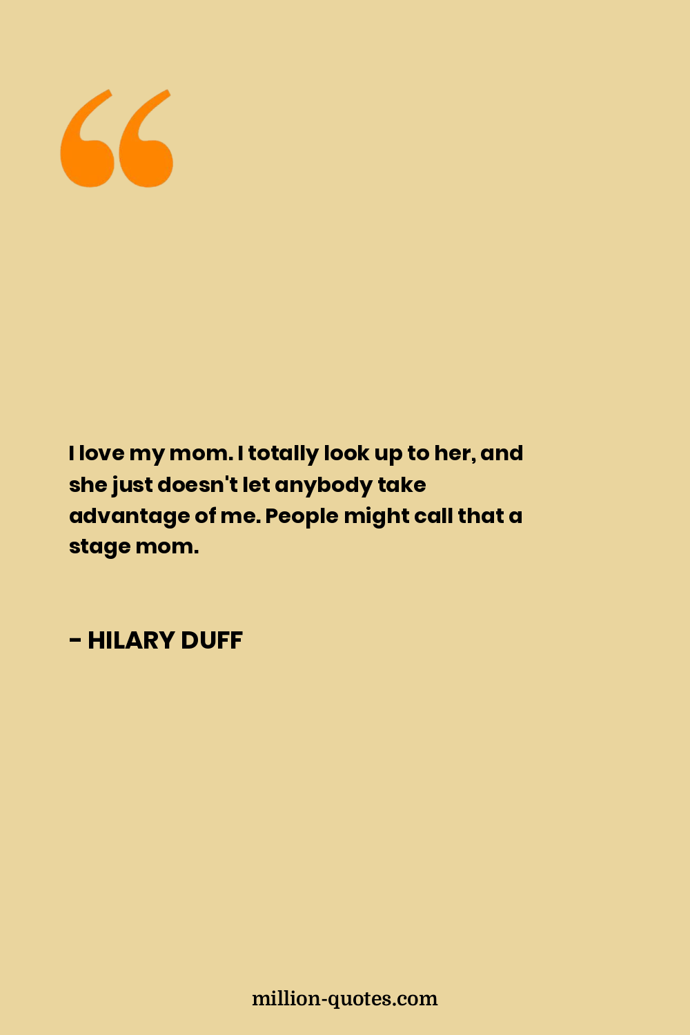 I love my mom. I totally look up to her, and she just doesn't let anybody take advantage of me. People might call that a stage mom.