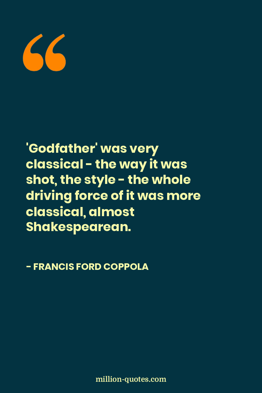 'Godfather' was very classical - the way it was shot, the style - the whole driving force of it was more classical, almost Shakespearean.