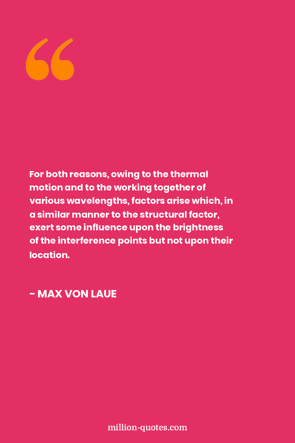 For both reasons, owing to the thermal motion and to the working together of various wavelengths, factors arise which, in a similar manner to the structural factor, exert some influence upon the brightness of the interference points but not upon their location.
