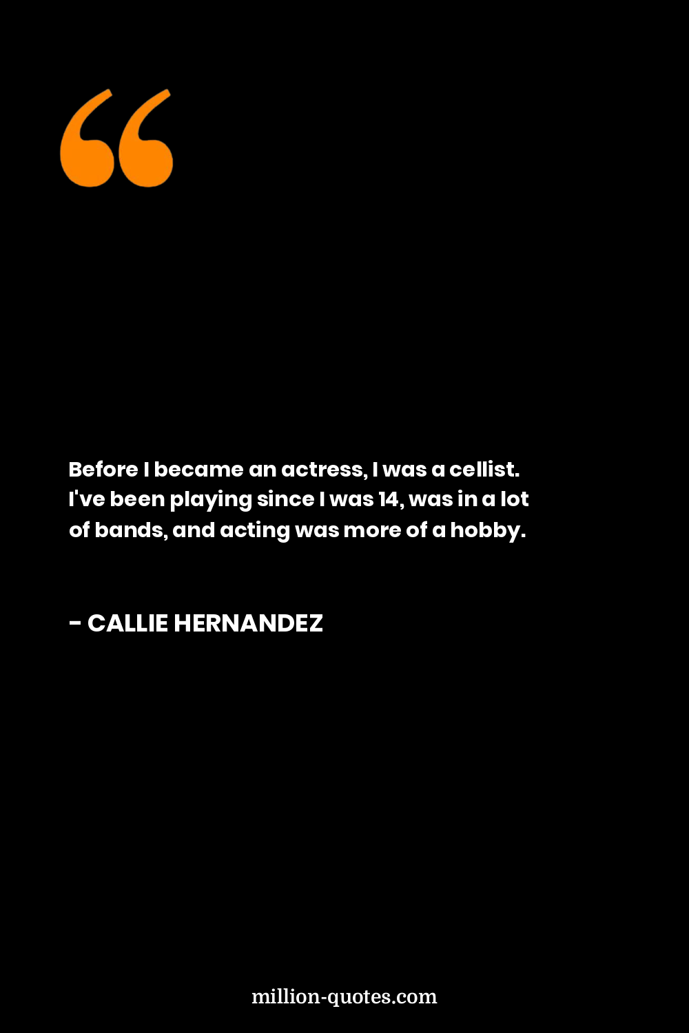 Before I became an actress, I was a cellist. I've been playing since I was 14, was in a lot of bands, and acting was more of a hobby.