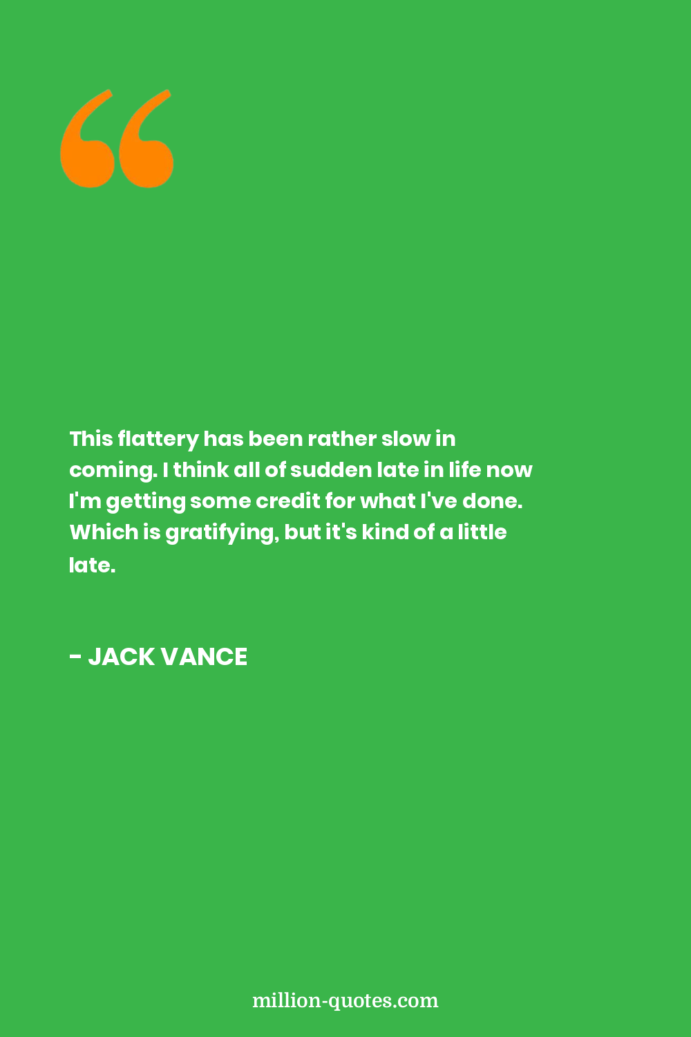 This flattery has been rather slow in coming. I think all of sudden late in life now I'm getting some credit for what I've done. Which is gratifying, but it's kind of a little late.