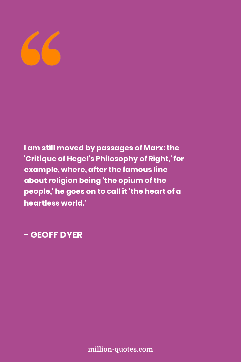 I am still moved by passages of Marx: the 'Critique of Hegel's Philosophy of Right,' for example, where, after the famous line about religion being 'the opium of the people,' he goes on to call it 'the heart of a heartless world.'
