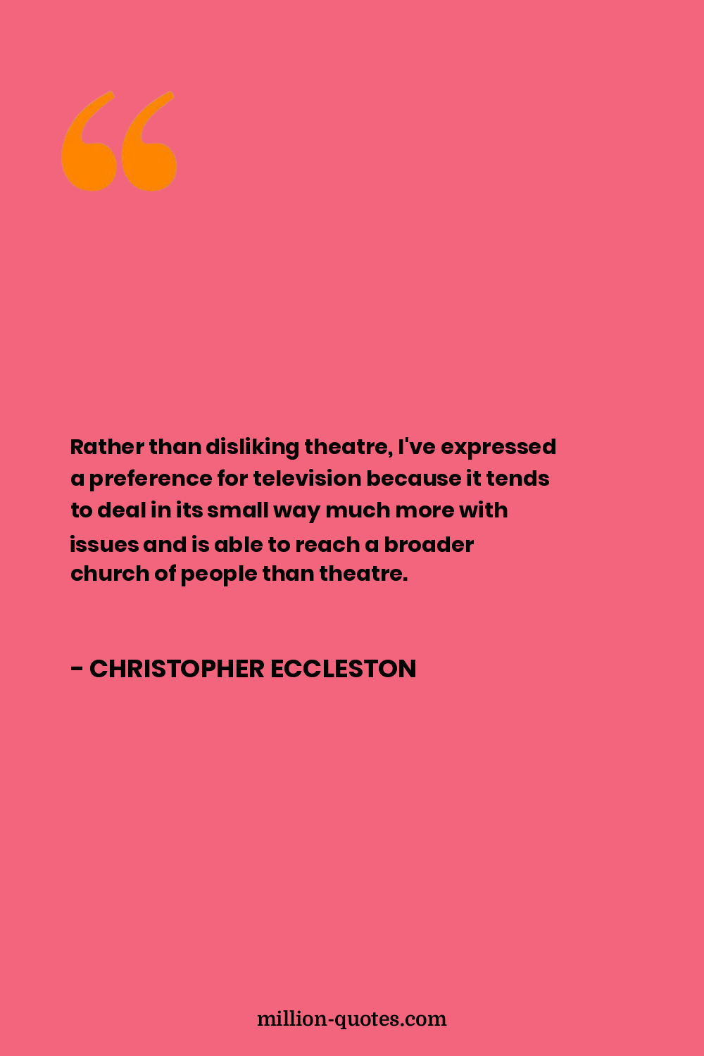 Rather than disliking theatre, I've expressed a preference for television because it tends to deal in its small way much more with issues and is able to reach a broader church of people than theatre.