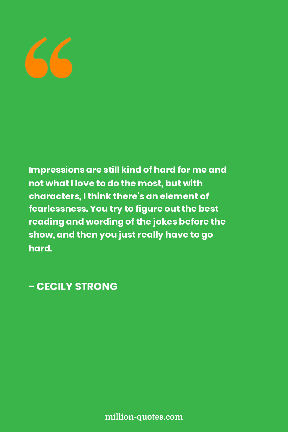 Impressions are still kind of hard for me and not what I love to do the most, but with characters, I think there's an element of fearlessness. You try to figure out the best reading and wording of the jokes before the show, and then you just really have to go hard.