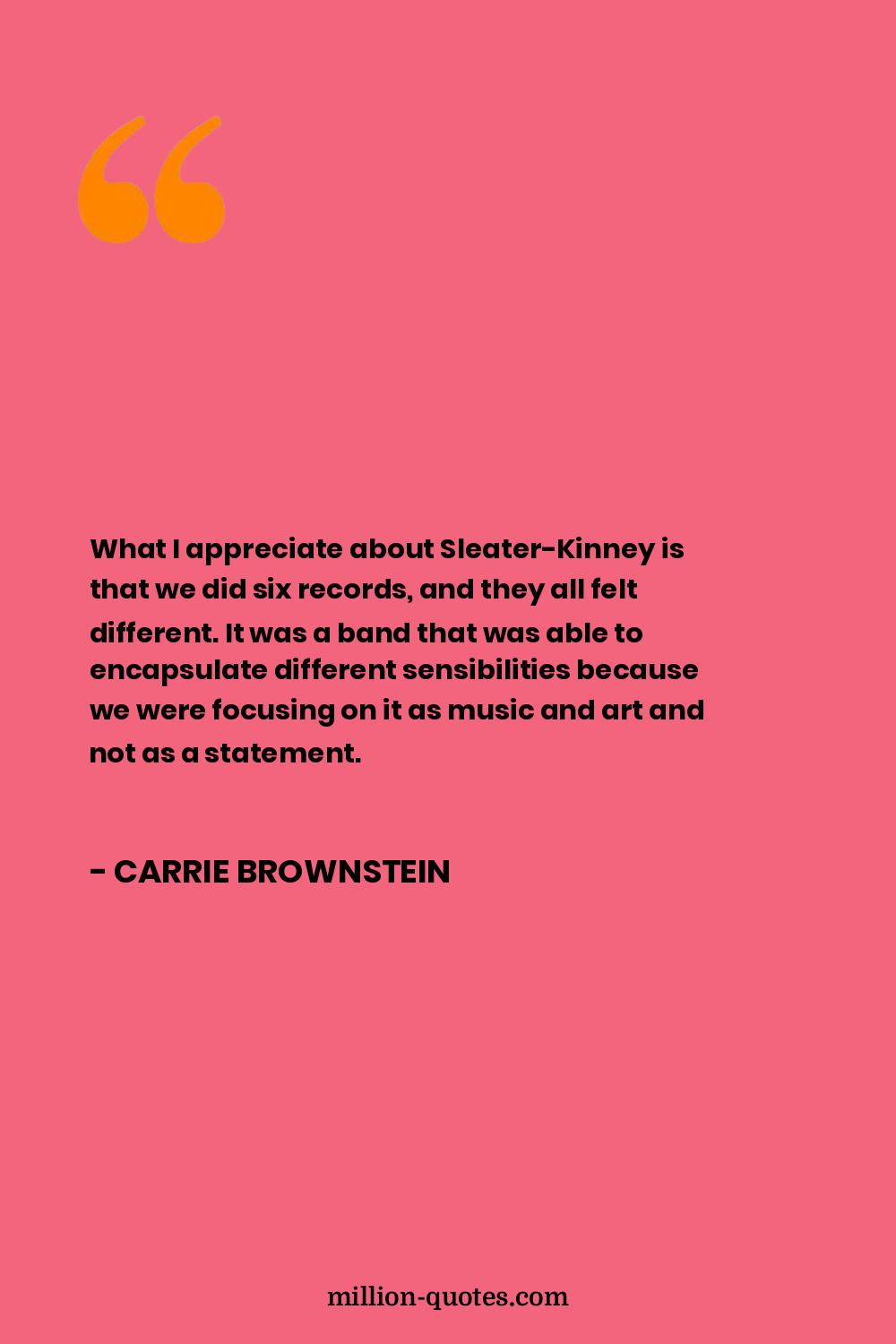 What I appreciate about Sleater-Kinney is that we did six records, and they all felt different. It was a band that was able to encapsulate different sensibilities because we were focusing on it as music and art and not as a statement.