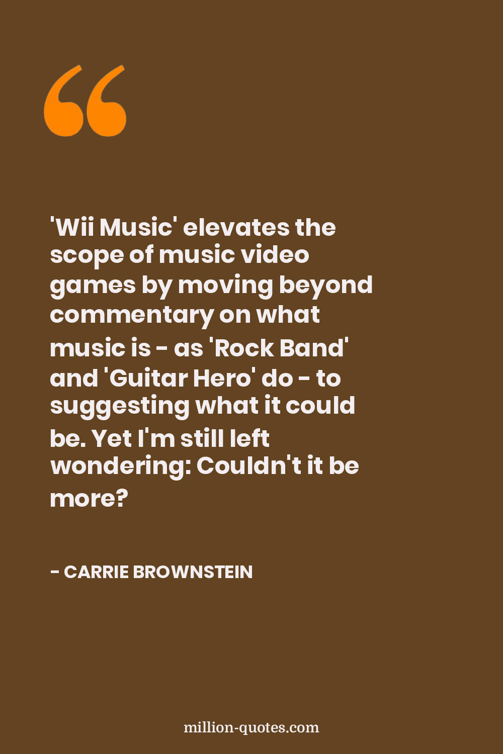 'Wii Music' elevates the scope of music video games by moving beyond commentary on what music is - as 'Rock Band' and 'Guitar Hero' do - to suggesting what it could be. Yet I'm still left wondering: Couldn't it be more?